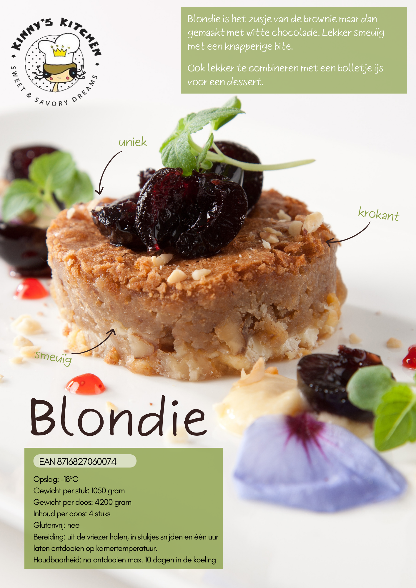 Kinny is geboren in Amerika en opgegroeid in Nederland. Ze heeft met haar passie voor eten veel ervaring opgedaan met het werken in diverse horecazaken. Ook heeft ze een succesvol cateringbedrijf gehad waar veel horecabedrijven haar wisten te vinden met de producten die ze destijds ontwikkelde. Daar is ook de Blondie geboren, welke nu een van haar bekendste en populairste producten is.